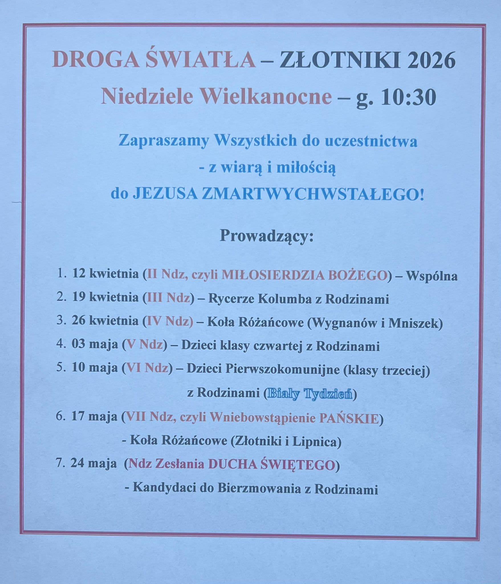 Niedziele Wielkanocne – g. 10:30