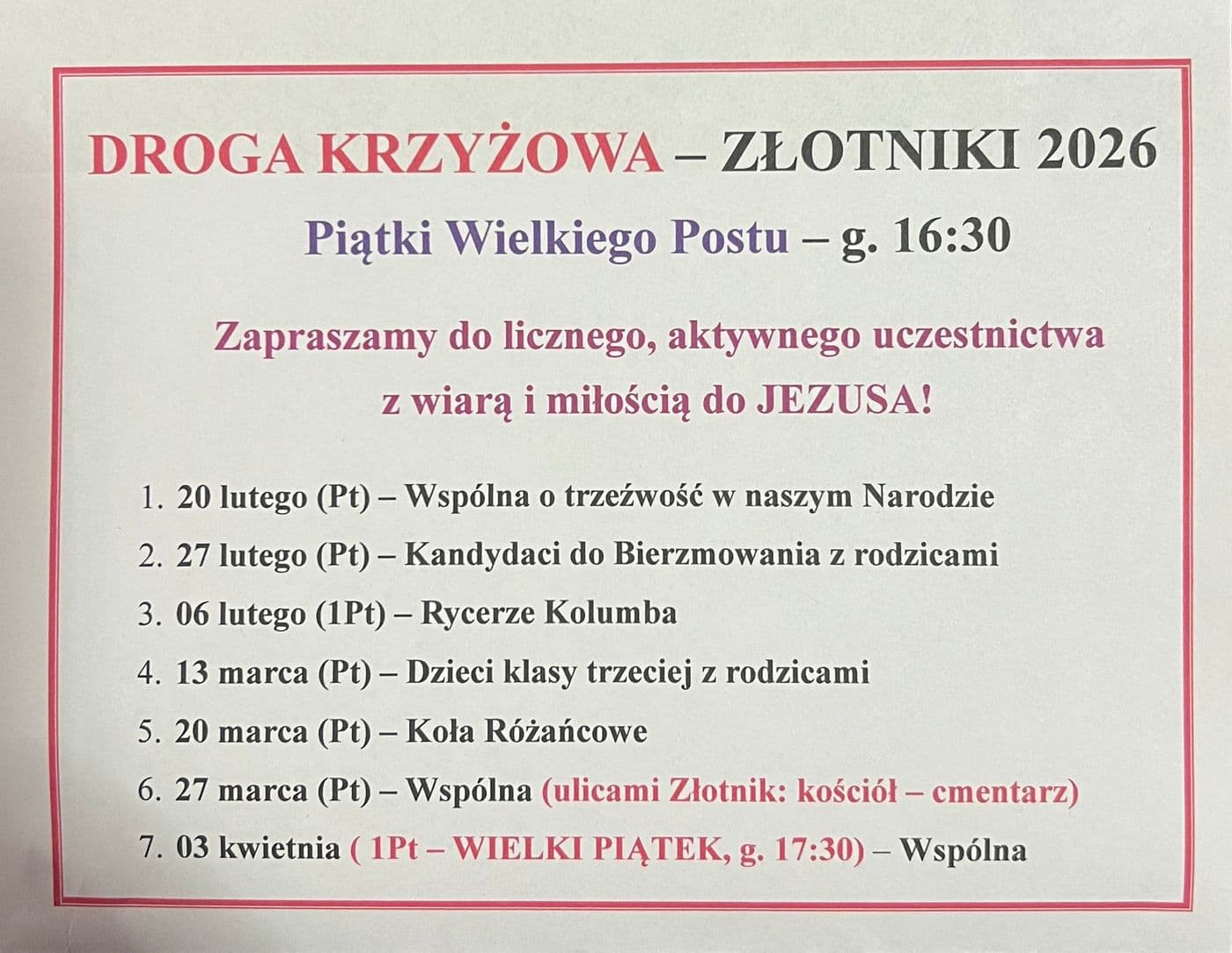DROGA KRZYŻOWA 2026 - ZŁOTNIKI