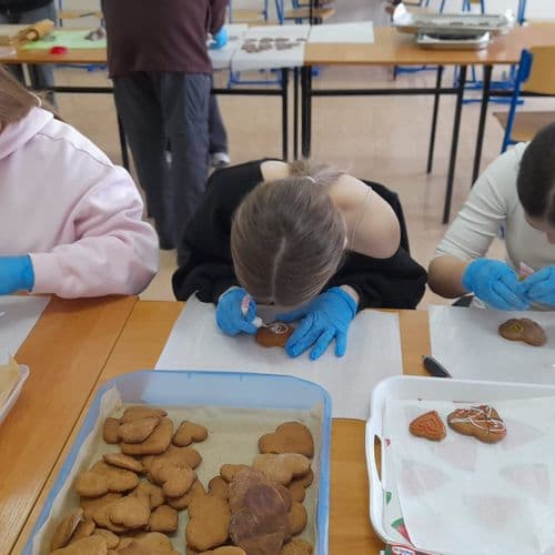 Celem akcji było wsparcie zarówno dorosłych, jak i najmłodszych podopiecznych Hospicjum im. św. Matki Teresy z Kalkuty w Kielcach poprzez przygotowanie, upieczenie, udekorowanie i sprzedaż pierniczków w kształcie serca. Młodzież z naszej szkoły wspaniale wykonała to zadanie, które wymagało mnóstwa czasu oraz indywidualnego zaangażowania. Pierniczki zostały przygotowane częściowo w domach, przy ogromnej pomocy Rodzin wolontariuszy, a częściowo w szkole, w trakcie specjalnych zajęć. Podczas tworzenia „serduszkowych ciastek”, ich dekorowania, pakowania oraz rozprowadzania, członkowie SKW wykazali się ogromną wrażliwością na los potrzebujących pomocy oraz odpowiedzialnością za własne działania. Akcja trwała w dniach: 3-15 lutego 2026r. W czasie finału akcji „Serce dla Hospicjum” rozprowadzonych zostało setki serc-pierniczków jako cegiełki pomocy i zebrano do puszek imponującą kwotę 5300 zł, która została następnie przekazana do Hospicjum, ku wielkiej radości hospicyjnych Pacjentów.